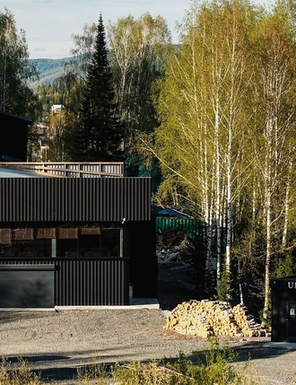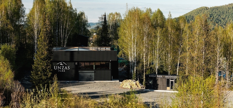 Вид из окна: живописные пейзажи территории курорта или уютный внутренний двор. Корпус на склоне горы рядом с сервисом для обслуживания снегоходов.