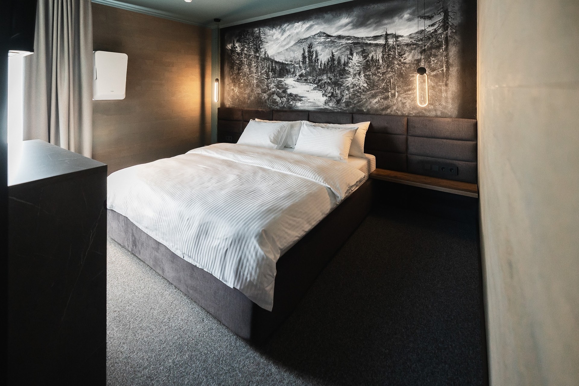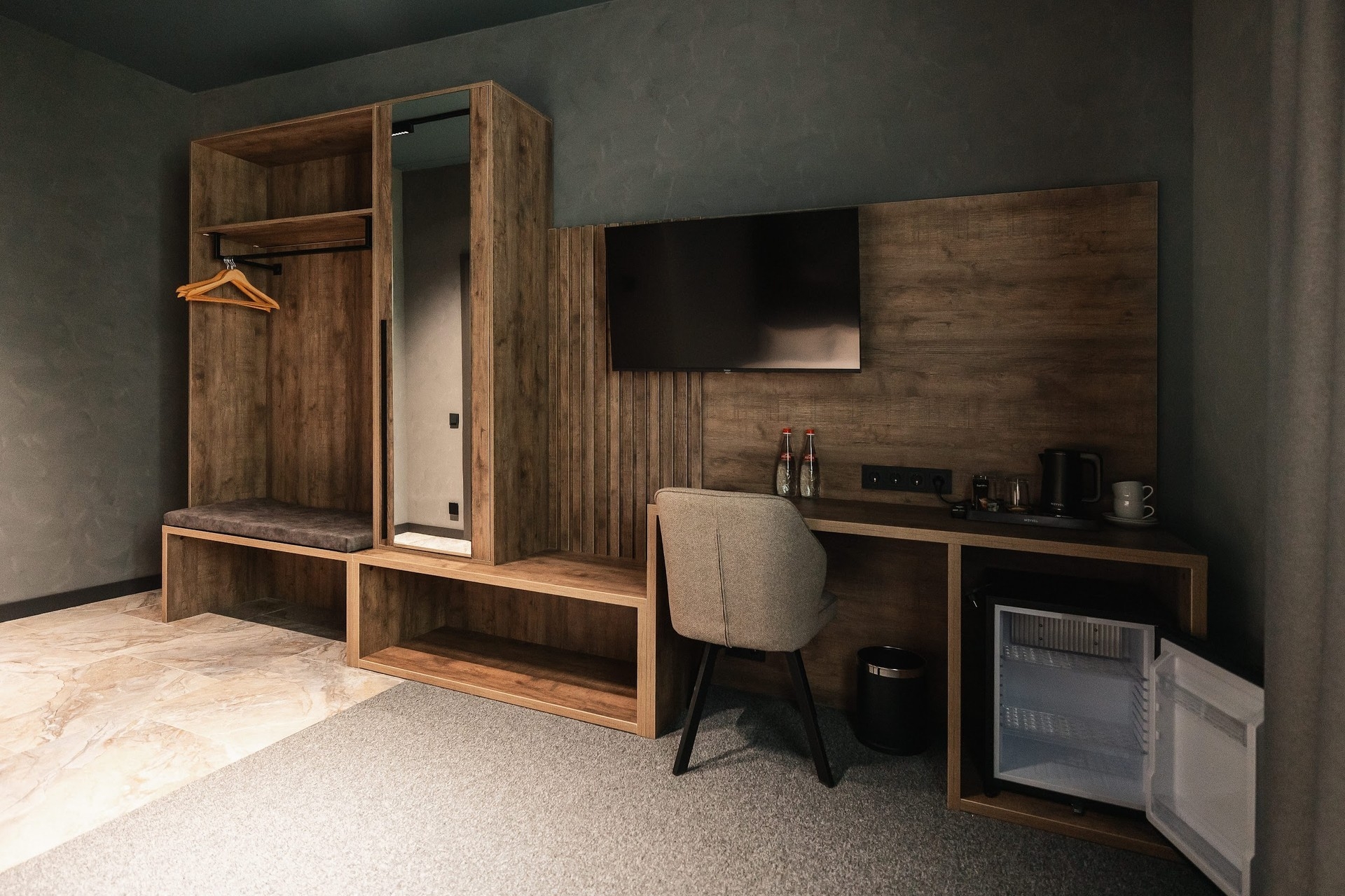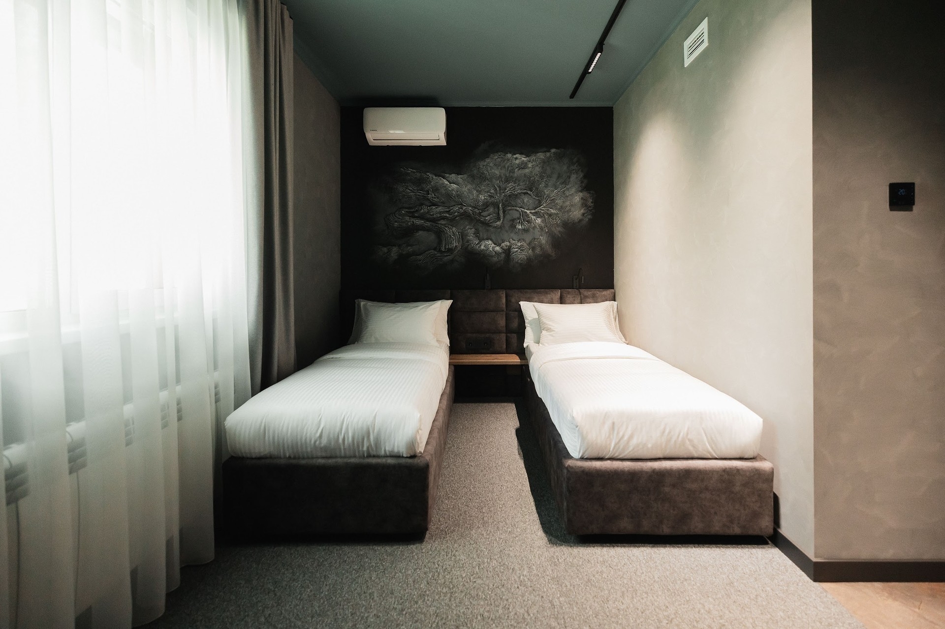 Просторные современные номера с необходимой техникой, махровыми халатами и удобными кроватями.